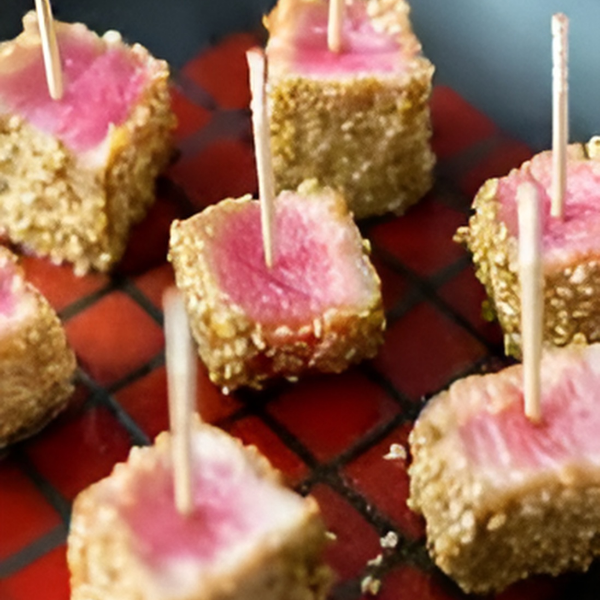 Sushi style ahi tuna cubes marinated in wasabi and cilantro dipping. Served with tamari dipping sauce.