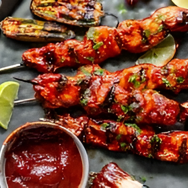 Char-broiled skewered chicken breast strips marinated in smoky chipotle blend. (2pcs).